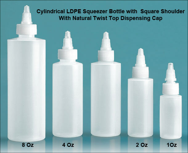 Home :: E Bay Specials :: Packaging Products :: Pack of 36 x 1 Oz (~29.6ml) Cylindrical LDPE Squeezer Bottle with Square Shoulder With Natural Twist Top Dispensing Cap
